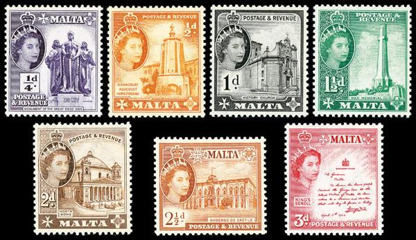 1956-57, ¼d-£1 Queen Elizabeth II Pictorials complete (Scott 246-262), o.g., never hinged (1s6d large tear), Very Fine. SG 266-282. Scott $127. (Image)