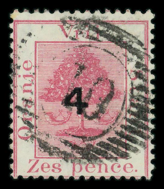 1877, 4d on 6d rose Orange Tree, type 'c' surcharge (Scott 15), Fine to Very Fine. Scott $43. (Image)