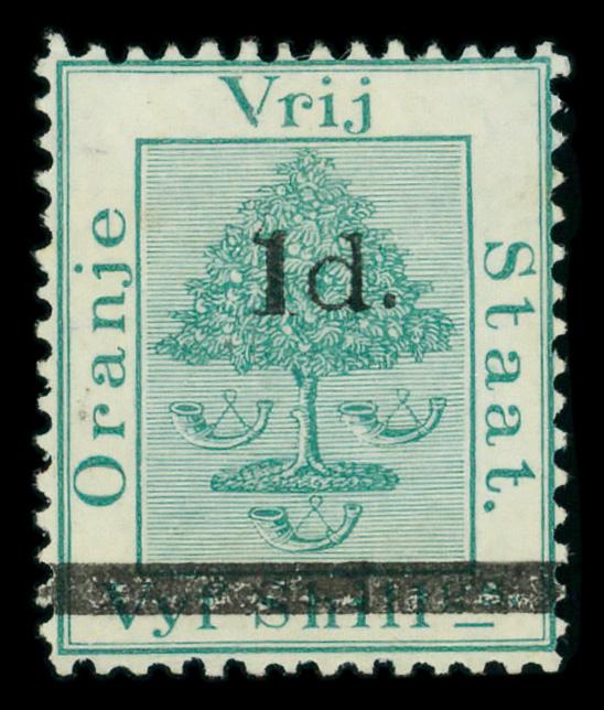 1881, 1d on 5sh green Orange Tree, bar & type 'k' surcharge (Scott 21), o.g., hinge remnant, Very Fine. Scott $600. (Image)