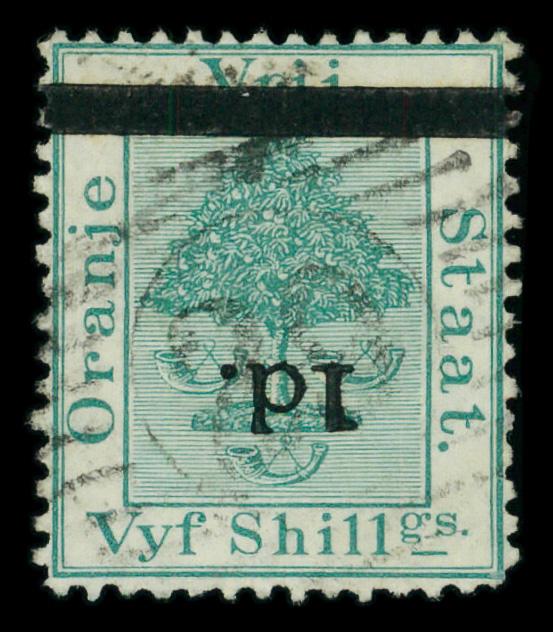 1881, 1d on 5sh green Orange Tree, inverted bar & type 'l' surcharge (Scott 21Cd), Very Fine. Scott $875. (Image)
