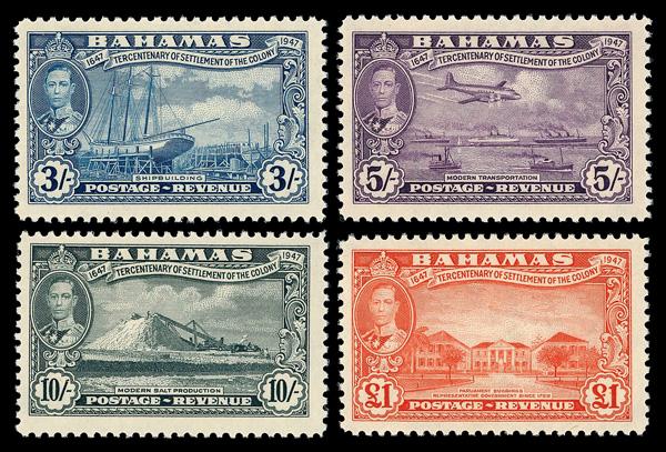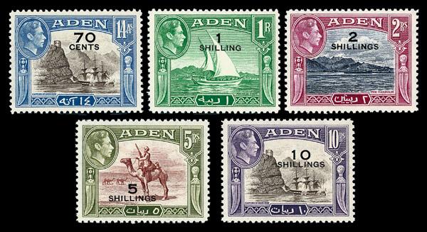 1951, King George VI Pictorial Surcharges, 5¢ to 10s complete (Scott 36-46), set of 11, complete set of singles, o.g., never hinged, Very Fine. SG 36/46; £85 ($110). Scott $83. (Image)