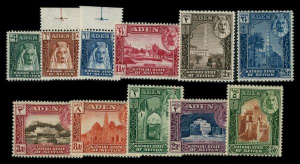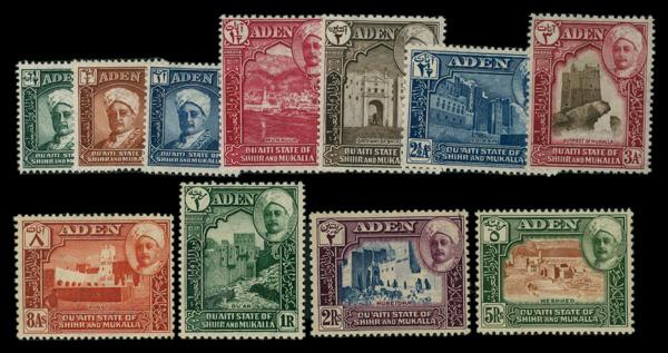 1942, Sultan Jafar and Pictorials, ½a to 5r complete (Scott 1-11), set of 11, complete set of singles, o.g., never hinged, Very Fine. SG 1/11; £60 ($80). Scott $61. (Image)
