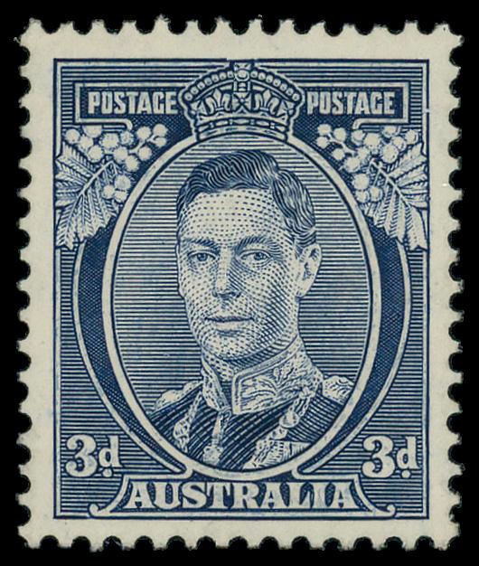 1937, King George VI, 3d blue, perf 13½x14, Die I (Scott 170), single, o.g., never hinged, Very Fine. SG 168; £65 ($80). Scott $65. (Image)