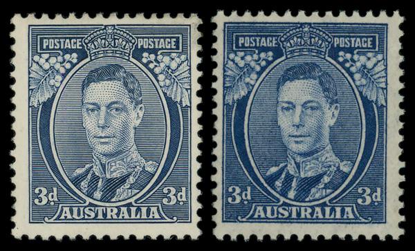 1937, King George VI 3p printing varieties (Scott 170,170a), singles, o.g., never hinged, Very Fine. SG 168,168ca; £125 ($160). Scott $120. (Image)