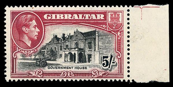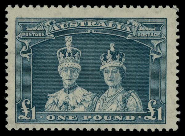1949, King George VI & Queen Elizabeth, £1 bluish slate, thin rough ordinary paper (Scott 179a), single, o.g., never hinged, Very Fine. SG 178a; £70 ($90). Scott $120. (Image)