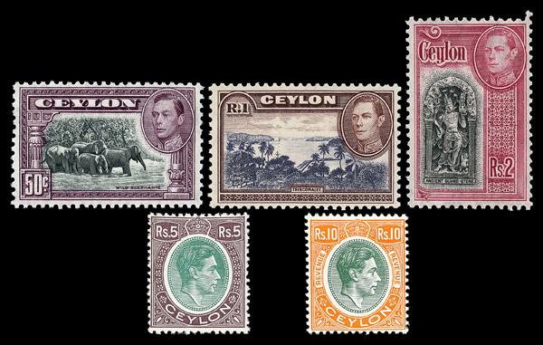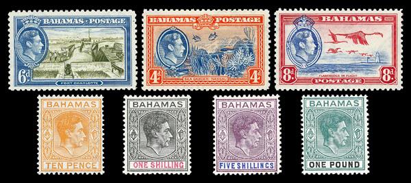 1938-52, King George VI Pictorials, 2¢-10r complete (Scott 278-289A), complete set of singles, o.g., never hinged, Very Fine. SG 386//97 var.; £100 ($130). Scott $265. (Image)