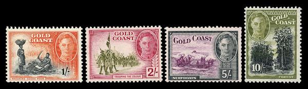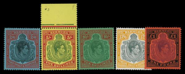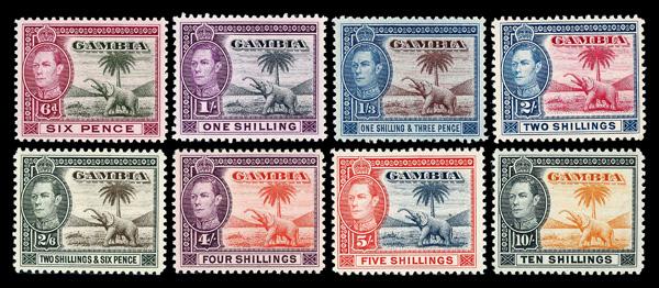 1938-43, King George VI definitives, ¼d to 10s complete (Scott 100-111), complete set of singles, o.g., never hinged, Very Fine. SG 115/126a; £100 ($130). Scott $125. (Image)