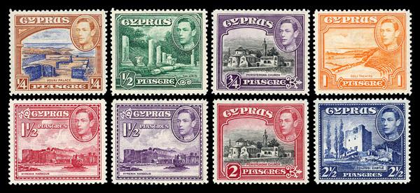 1951 King George VI pictorials complete (Scott 122-136), complete set of singles, o.g., never hinged, Very Fine. SG 120/34; £50 ($60). Scott $57. (Image)