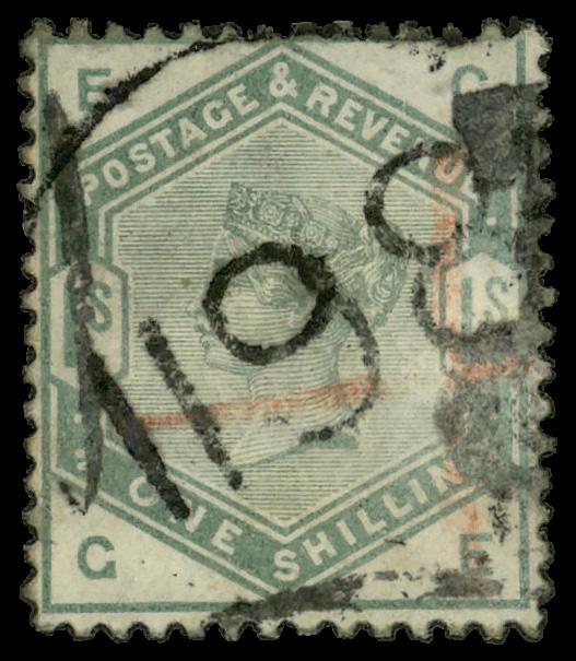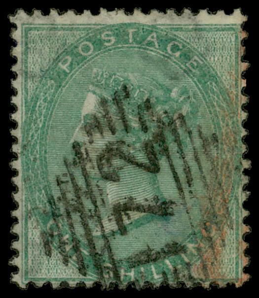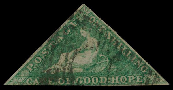 1863-64, Triangular, De La Rue printing, 1s bright emerald green (Scott 15), Very Good to Fine. SG 21. Scott $725. (Image)
