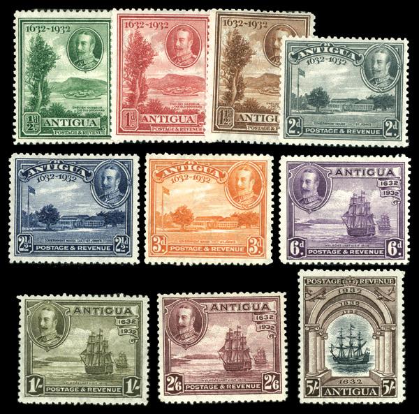 1932, Tercentenary of the Colony, ½d to 5s complete (Scott 67-76), set of 10, complete set of singles, o.g., lightly hinged, Fine to Very Fine. SG 81/90; £225 ($290). Scott $262. (Image)