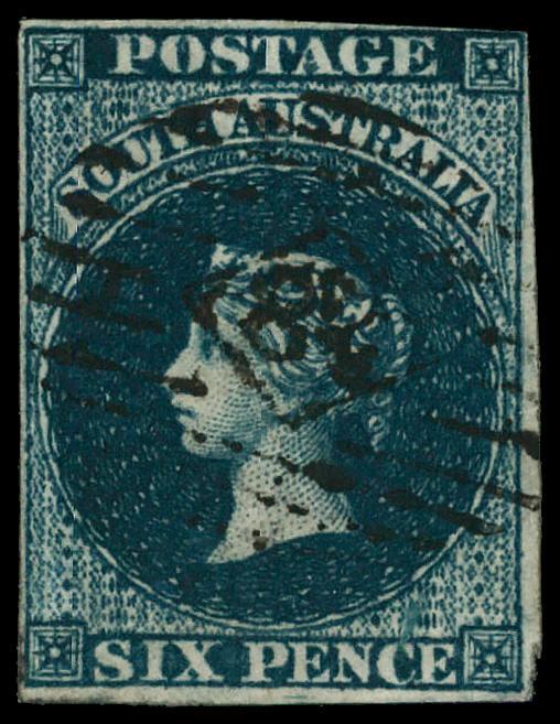 1857, Queen Victoria (Local Print), 6d slate blue, imperf (Scott 8), Large Star watermark, Fine to Very Fine. SG 10. Scott $200. (Image)