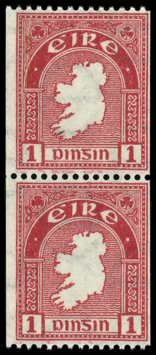 1940, Pictorial definitive coil, 1d carmine, perf 14 x imperf (Scott 105a), pair, o.g., never hinged, Fine. SG 112b. Scott $120. (Image)