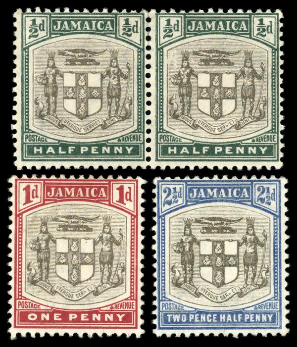 1903-04, ½d-2½d Arms, 'SERv ET' error (Scott 33b, 34b & 35a), o.g., lightly hinged, Fine to Very Fine. Scott $145. (Image)