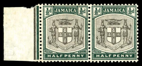 1905, Redrawn Arms, ½d gray & dull green, "SER.ET" for "SERVIET" (Scott 37 & 37b), left margin pair, one with error, o.g., lightly hinged, Fine to Very Fine. Scott $31. (Image)