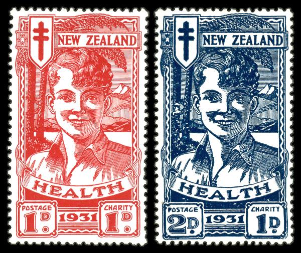 1931 Health complete (Scott B3-B4), complete set of singles, o.g., lightly hinged, Very Fine. SG 546/7; £150 ($190). Scott $200. (Image)