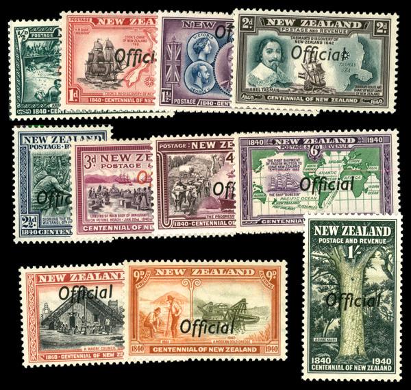 Officials, 1940, Centenary of British Sovereignty, ½d to 1s complete (Scott O76-O86), set of 11, complete set of singles, o.g., never hinged, Very Fine. SG O141/O151; £190 ($240). Scott $190. (Image)