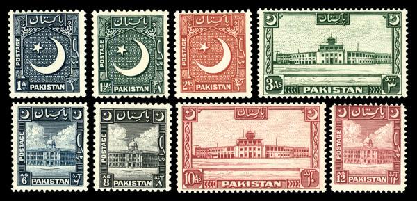 1949-53, 1a-12a regular issue, re-engraved crescents, complete (Scott 47-54), set of 8, o.g., lightly hinged, Fine to Very Fine. Scott $132. (Image)