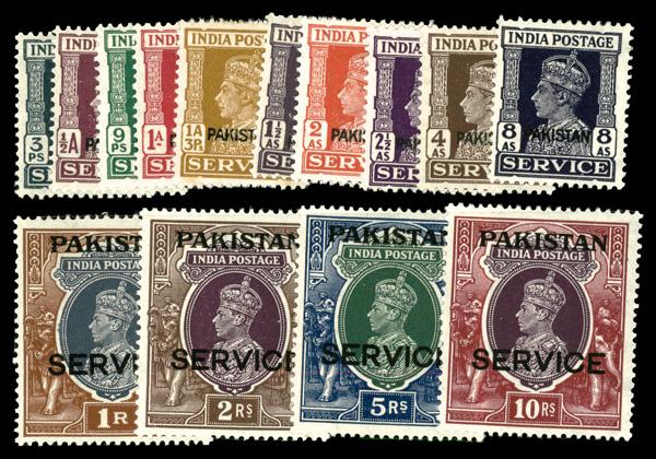 1947-1949, George VI 3p-10r over printed complete (Scott O1-O13), complete set of singles, o.g., lightly hinged, Fine to Very Fine. Scott $90. (Image)