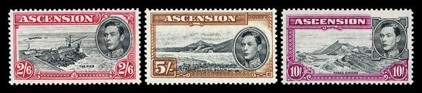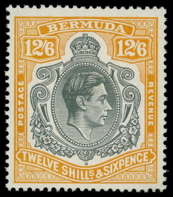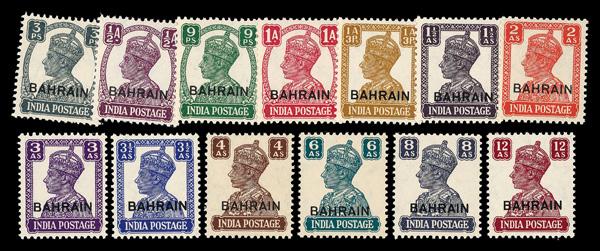 1942-44, King George VI definitives, 3p to 12a complete (Scott 38-51), complete set of singles, Very Fine. SG 38/50; £140 ($180). Scott $135. (Image)