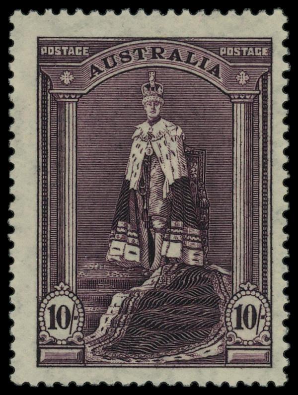 1948, King George VI "Robes", 10s dull purple, thin rough ordinary paper (Scott 178a), single, o.g., never hinged, Very Fine. SG 177a; £50 ($60). Scott $60. (Image)