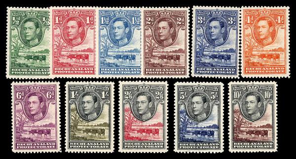 1938, King George VI, ½d to 10s complete (Scott 18-28), complete set of singles, o.g., never hinged, Very Fine. SG 18/28; £110 ($140). Scott $750. (Image)