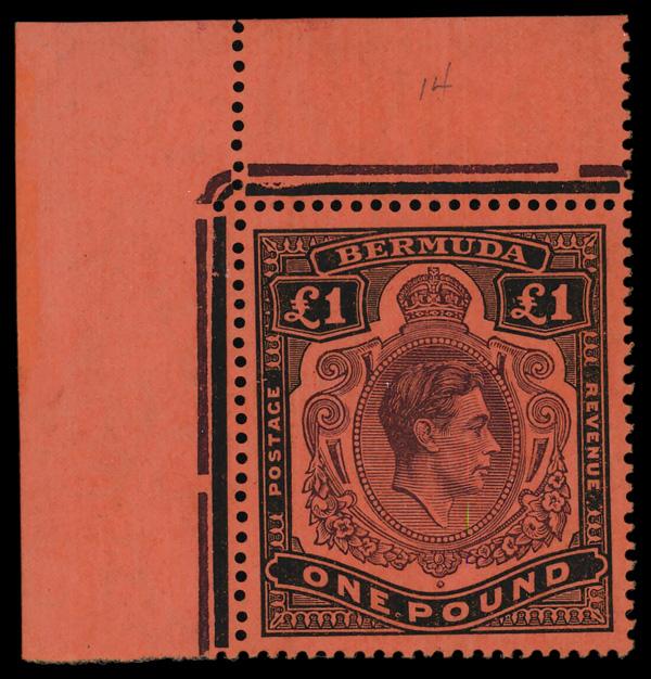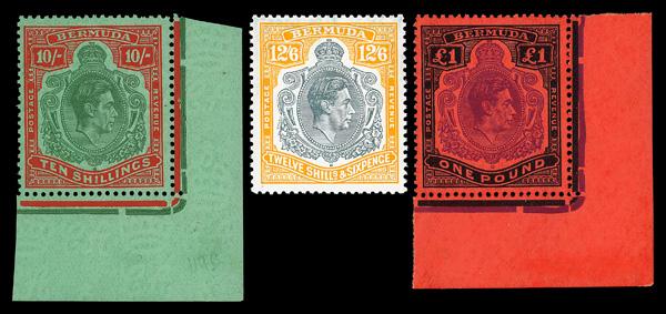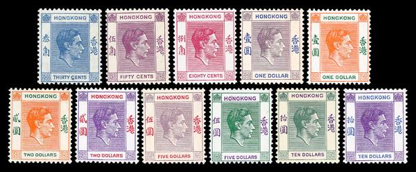 1938-52, King George VI, 1d to £1 complete (Scott 118-128), set of 16 (Gibbons) or 14 (Scott), complete set of singles, o.g., never hinged, Very Fine. SG 110/121d; £350 ($440). Scott $450. (Image)