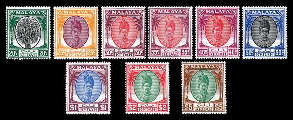 1937, Sultan Badlishah complete (Scott 61-81), o.g., never hinged, Very Fine. SG 76/90; £160 ($200). Scott $170. (Image)