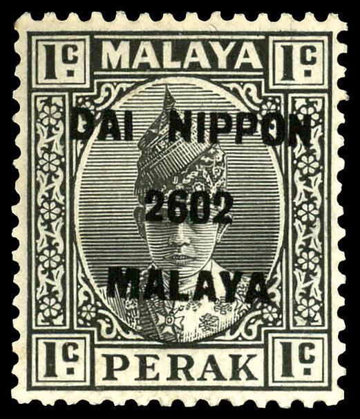 1942, Sultan Iskandar 1¢ black overprinted (Scott N16A), single, o.g., never hinged, Fine to Very Fine. Scott $150. (Image)