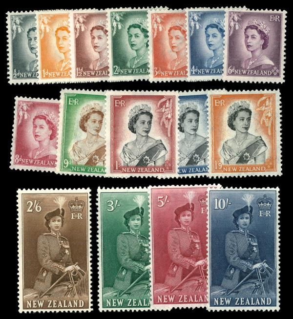 1953-57, Queen Elizabeth (Scott 288-301), complete set of singles, o.g., never hinged. Scott $180. (Image)