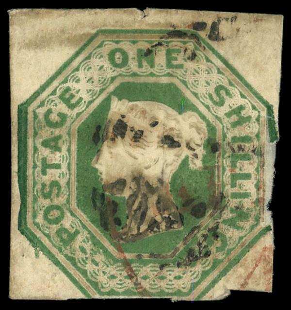1847, Queen Victoria (embossed), 1s pale green (Scott 5); thin, Very Good to Fine. SG 54. Scott $1,000. (Image)