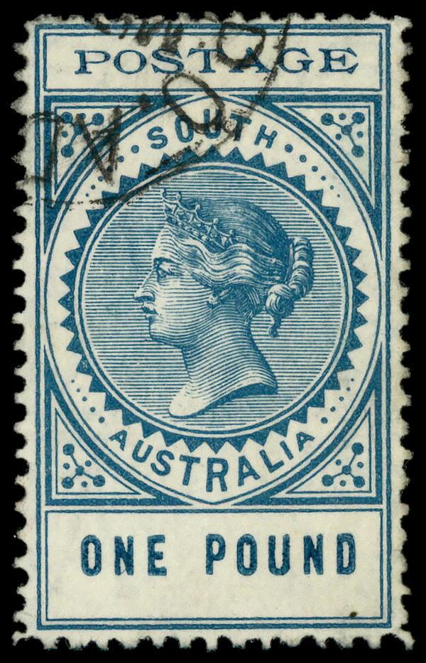 1902, Queen Victoria (thin "POSTAGE"), £1 blue, perf 11½-12½ (Scott 131), Crown and SA (close) watermark, Fine. SG 279. Scott $275. (Image)