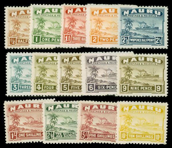 1924, Freighter, ½p-10sh complete (Scott 17-30a), complete set of singles, o.g., lightly hinged or hinge remnant, Fine to Very Fine. Scott $255. (Image)