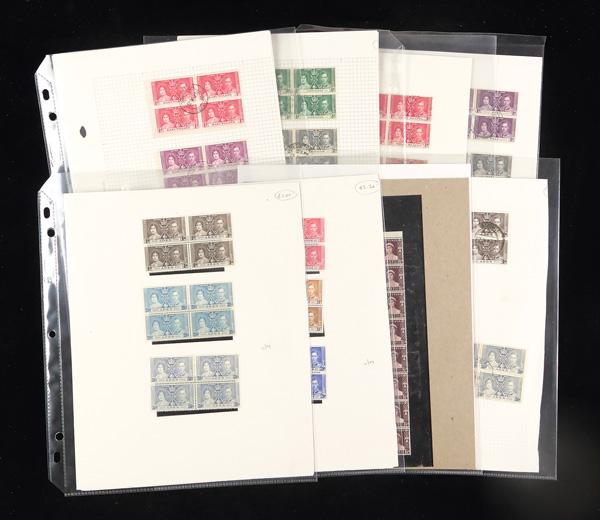 British Commonwealth, 1937, Coronation Issue, blocks of 4, I can say finding mint stamps of this issue are a dime to a dozen, but the used blocks are a different story. This collection is a mix of mint and used blocks of this issue not all countries are represented. Some of the used blocks have a cancel 12 May 1937 and appears they are not to far off of the first day, Fine to Very Fine. Shipping charges apply - weight 2 lbs. Scott $260. (PDF for this Lot) (Image)
