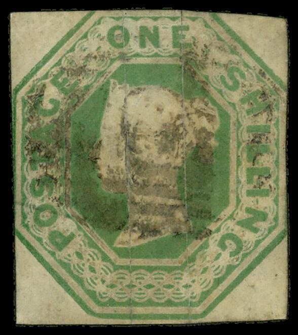 1847, Queen Victoria (embossed), 1s pale green (Scott 5), Very Good to Fine. SG 54. Scott $1,000. (Image)
