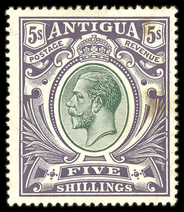 1913, King George V, 5s gray green & violet (Scott 41), single, o.g., lightly hinged, Fine to Very Fine, stains. SG 51; £95 ($120). Scott $100. (Image)