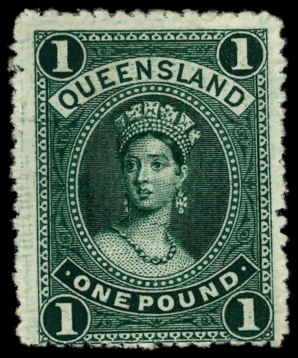 1883, Queen Victoria "Chalon Head", £1 deep green (Scott 83), Large Crown & Q watermark, o.g., hinge remnants, Very Good. SG 161. Scott $350. (Image)