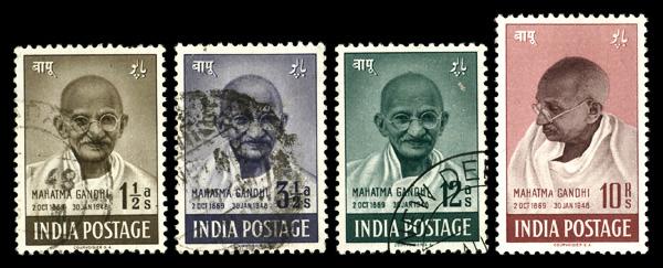 1948, Gandhi complete (Scott 203-206), set of 4, 10r o.g., hinge remnant, Very Fine to Extremely Fine. SG 305/8. Scott $518. (Image)