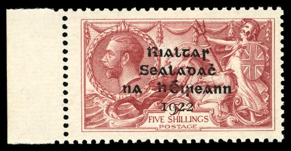 1922, Dollard Provisional Govt. overprint on King George V "Seahorse", 5s rose carmine (Scott 13), o.g., never hinged, Very Fine to Extremely Fine. SG 19. Scott $210. (Image)
