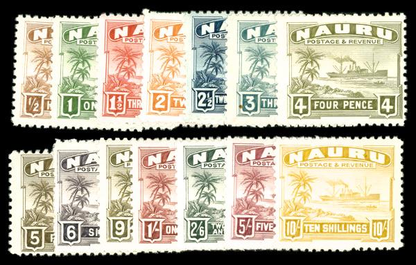1924, Freighter complete (Scott 17-30a), complete set of single, o.g., 3 stamps never hinged, Fine to Very Fine, 2s6p, 5s and 10S are mint never hinged. Scott $223. (Image)