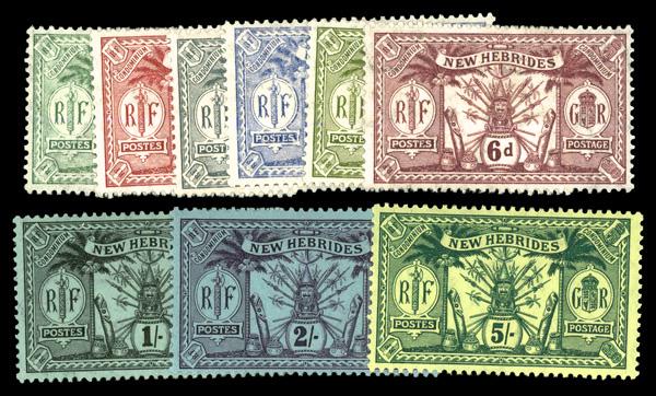 1922-23, 1st Pictorial definitive issue, ½d to 1s complete (SG 71/82), o.g., hinged, Fine to Very Fine. Scott 65-76; $143. (Image)