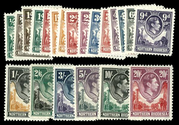 1938, King George VI Pictorials, ½d to 20s complete (Scott 25-45), complete set of singles, o.g., lightly hinged, Very Fine. SG 25/45; £250 ($320). Scott $157. (Image)