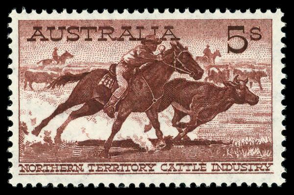 1964, Aboriginal Stockman, 5s brown red on white paper (Scott 331 var.), o.g., never hinged, Fine to Very Fine. SG 327a. Scott $120. (Image)