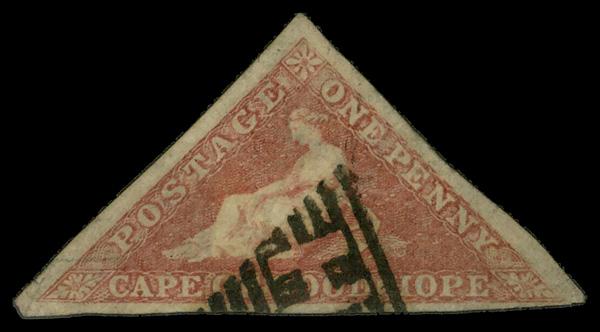 1858, Triangular, Perkins Bacon printing, 1d rose on cream-toned paper (Scott 3), Fine to Very Fine. SG 5a. Scott $325. (Image)