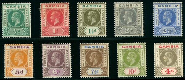 1921-22, King George V, ½d-4s complete (Scott 87-96), Multiple Script CA watermark, o.g., hinged, Fine to Very Fine. SG 108/17. Scott $139. (Image)