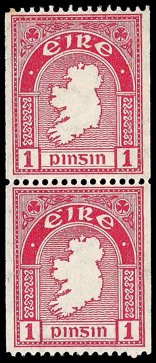 1946, Pictorial definitive coil, 1d carmine, perf 15 x imperf (Scott 105), pair, o.g., lightly hinged, Very Fine to Extremely Fine. SG 112c. Scott $80. (Image)