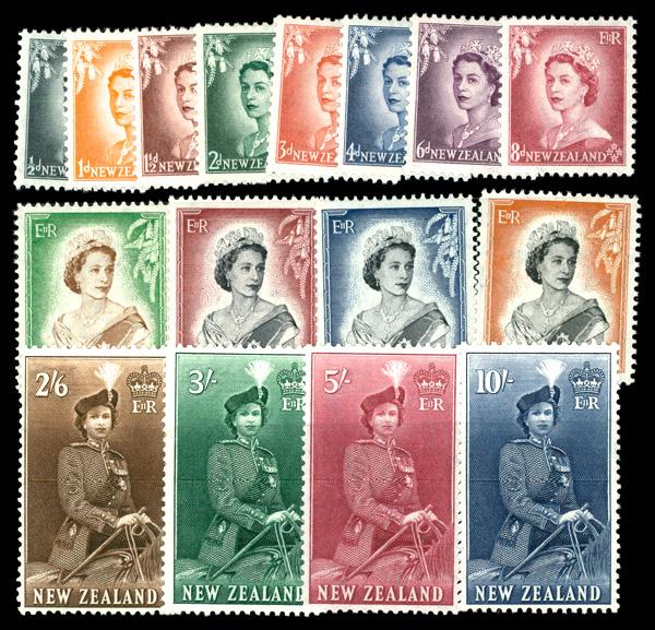 1953-57, Queen Elizabeth (Scott 288-301), complete set of singles, o.g., never hinged. Scott $180. (Image)