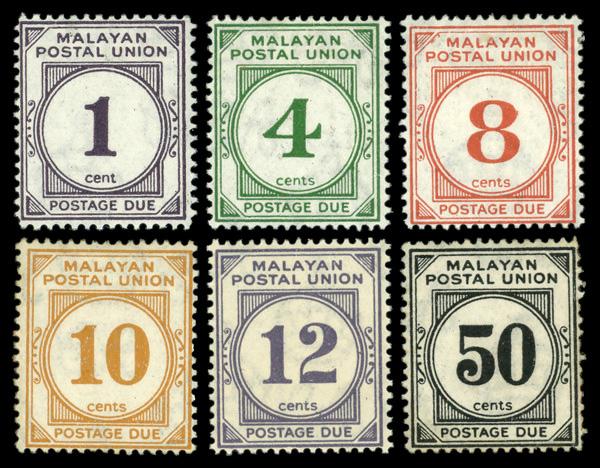 1936, Postage Dues 1¢-50¢ complete (Scott J7-J12), complete set of singles, o.g., lightly hinged, Fine to Very Fine. Scott $173. (Image)