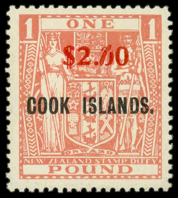 1967, New Zealand Postal Fiscal stamp, $2 on £1 overprint variety (Scott 192), single, o.g., never hinged, Broken zero. SG 219; £65 ($80). Scott $70. (Image)
