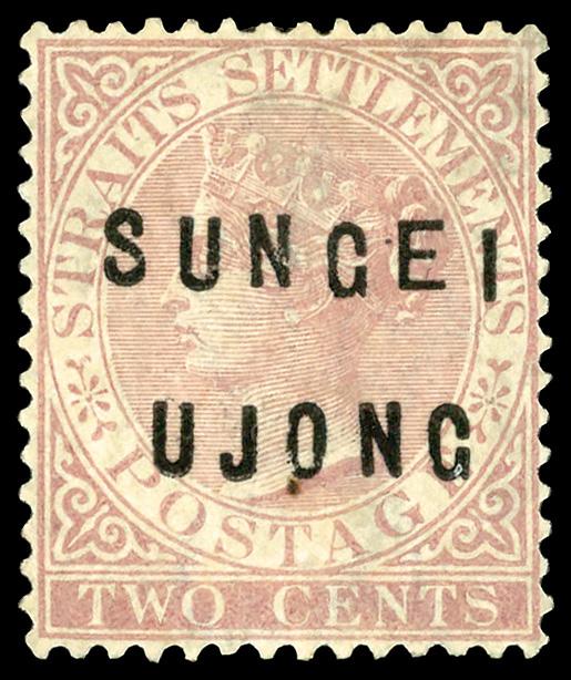 1881 Victoria, Straits Settlement 2¢ rose over printed Sungei Ujong (Scott 15), single, unused without gum, Fine to Very Fine. Scott $140. (Image)