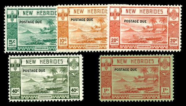1938, Native Idols Over printed complete (Scott J6-J10), complete set of singles, o.g., never hinged, Very Fine. Scott $170. (Image)